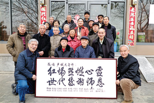 今年86歲盧斌元、83歲的鄭志新兩位老人上個世紀五、六十年代在忻府區(qū)董村鎮(zhèn)令歸村小學擔任小學老師,他們可謂桃李滿天下,所教的學生后來大多都是機關、廠礦、學校、農(nóng)村的佼佼者,如今這些學生都已是古稀老人了。2月25日上午,18位接受過兩位老師教育的令歸村“古稀學生”特邀恩師座談,共敘尊師重教之情,并向兩位恩師分別贈送了題有“紅燭點燃心靈、世代感謝師恩”的書法牌匾。兩位白發(fā)蒼蒼的耄耋老師十分激動。(魯明強 攝影報道)