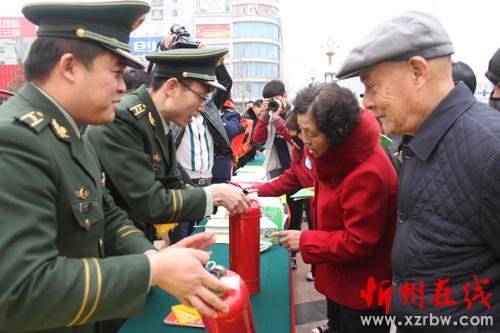 3月15日,原平市開(kāi)展了“3.15國(guó)際消費(fèi)者權(quán)益日”宣傳咨詢服務(wù)活動(dòng)?!岸拘袆?dòng)”開(kāi)展以來(lái),該市組織消防、藥品等有關(guān)部門工作人員開(kāi)展以“新消費(fèi) 我做主”為主題多種形式的宣傳咨詢服務(wù),設(shè)立了咨詢臺(tái)、打擊非法集資等展示臺(tái),接受群眾咨詢,并發(fā)放各種宣傳材料十萬(wàn)余份,提高消費(fèi)者法制法規(guī)和知假辯假的能力。圖為消防工作人員向消費(fèi)者講解如何識(shí)別偽劣滅火器。(褚震 攝)