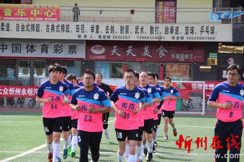 比賽現(xiàn)場氣氛熱烈,球員們你追我趕,配合默契,盡情揮灑著汗水。本屆足球比賽的9 支球隊全部為業(yè)余球隊,運動員來自各行各業(yè)。首場比賽由忻州傳奇隊對戰(zhàn)忻州水建麗寶隊。