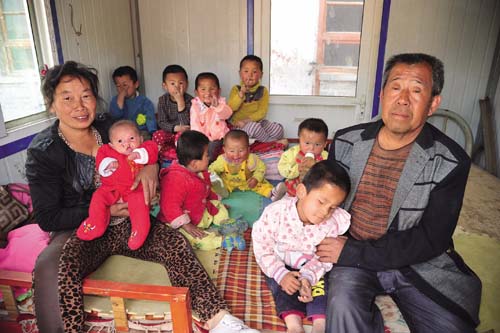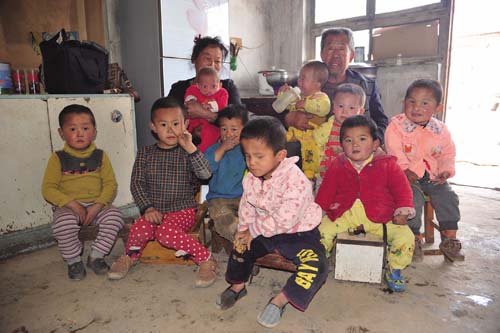 原來,張滿亮的妻子在附近的礦山企業(yè)打工當(dāng)廚師,在回家的途中遇到一個(gè)被父母遺棄路邊的殘疾棄嬰,在那里哇哇大哭,她左思右想不忍心,就將殘疾棄嬰抱回家撫養(yǎng),丈夫張滿亮不僅不嫌棄,還搭手幫忙。從此開始,得知張滿亮夫婦是樂做善事熱心人的縣民政局和周邊村民,就接連不斷地將殘疾棄嬰給張滿亮夫婦送來,他倆二話不說全部接納收養(yǎng),6年來一共接納了9名。隨著殘疾兒童的增多,自家房屋缺少?zèng)]法養(yǎng),村集體就將舊學(xué)校的幾間房屋騰出來讓他倆占用?,F(xiàn)在9名棄嬰,最大的五六歲,最小的才五個(gè)月,均有殘疾,有的兔嘴、缺耳、缺胳膊、雙目失明,有的患肌肉萎縮、肺腫大、心臟病、疝氣。張滿亮夫婦以父母般的愛心撫養(yǎng)照料這些孩子,還給起了很好聽的名字:張?zhí)炖住執(zhí)煊?、張?zhí)祜L(fēng)、張?zhí)煸?、張?zhí)觳?、張?zhí)鞂?、張?zhí)旎?、張麗花、張彩花。他倆與二兒媳董艷紅精心照料著殘疾兒童的一日三餐和生活起居,穿衣喂飯,潑奶哺乳,擦屎倒尿,大哭小叫,不厭不煩,起早貪黑,周而復(fù)始,以人間大愛撫育著這些殘疾兒童健康的成長(zhǎng)。