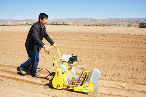5 月14 日上午,位于繁峙縣金山鋪鄉(xiāng)郝家灣村的海豐農(nóng)場的谷子試驗田里,山西農(nóng)業(yè)大學教授郭平毅正在為村民們演示韓國產(chǎn)小籽粒播種機的操作要領(lǐng)。山西農(nóng)業(yè)大學開展“送技術(shù)下基層”活動,他們?yōu)楹XS農(nóng)場送來了2 臺韓國產(chǎn)小籽粒播種機。(喬偉 攝)