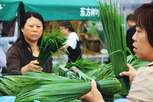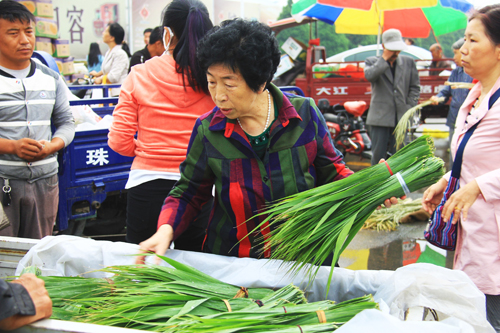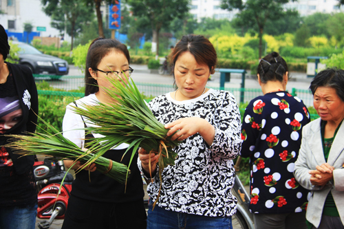 6月5日,傳統(tǒng)佳節(jié)端午節(jié)臨近,原平市民一大早就到市場上購買粽葉。看到每家小攤上都擠滿了前來購買粽葉的市民。一捆捆翠綠的粽葉整齊地擺放著,還散發(fā)著粽葉特有的清香味。銷售粽葉的攤販忙著招待顧客,銷售場面十分火爆。(吉建平 攝)