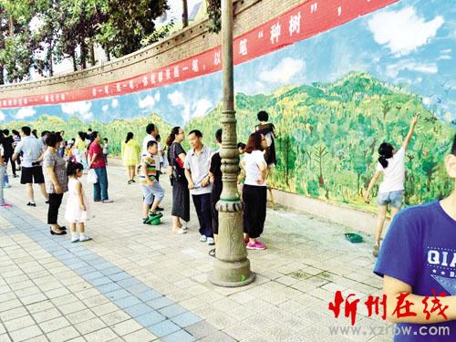 活動現(xiàn)場,廣場的弧形墻壁上一幅長45.5米、高2.9米的巨幅沙漠圖景栩栩如生,以筆為媒,你一筆,我一筆,你我都來畫一筆,市民用畫筆“種樹”,使“荒漠”變?yōu)椤熬G洲”,變?yōu)樯?。活動從上?點一直持續(xù)到晚上9點,市民們爭相前來完成森林圖景,讓和平廣場增添一份不一樣的美麗。來自我市長征路小學(xué)10歲的高藝軒,學(xué)習(xí)繪畫已有三年時間。他說這樣的活動讓他和小伙伴們開闊了視野,更加熱愛自然、熱愛綠色了。
