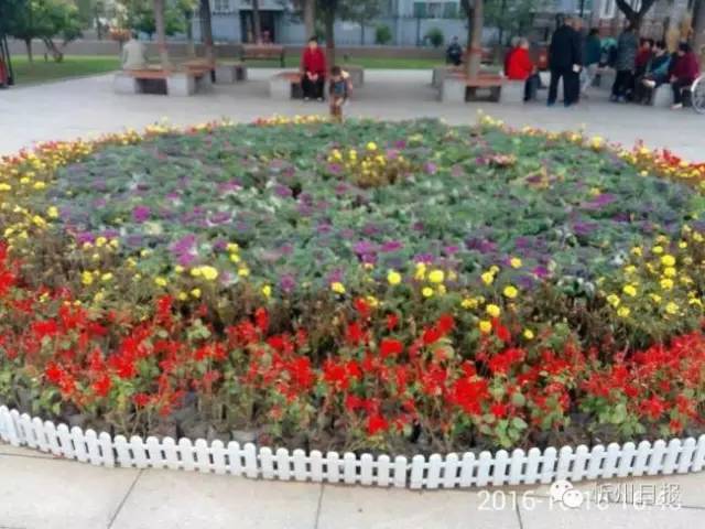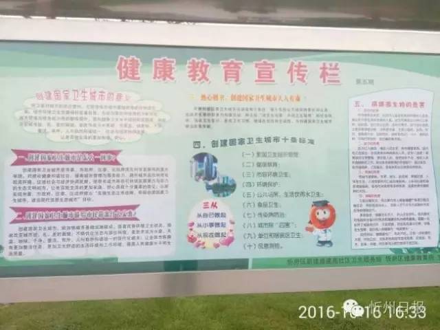 (四)為了突出創(chuàng)衛(wèi)這個詞語,我選用了健康教育宣傳欄和正在進行對這個城市面貌修飾的工人,還有我們學(xué)校附近的街心花園新修的一個花圃。(崔風(fēng)琴 攝)