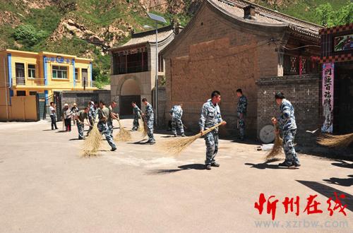圖為部隊(duì)官兵為王家會(huì)村打掃街道