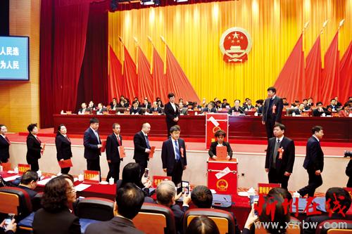 在市四屆人大二次會議第三次全體會議上代表們投票選舉 馮曉磊 攝