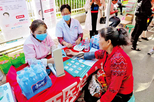 忻州中西醫(yī)結(jié)合醫(yī)院在忻州第一中學(xué)考點(diǎn)外設(shè)立服務(wù)臺(tái),免費(fèi)向考生提供礦泉水、藿香正氣滴丸,同時(shí)免費(fèi)為考生、家長(zhǎng)測(cè)量血壓,受到考生和家長(zhǎng)的歡迎。