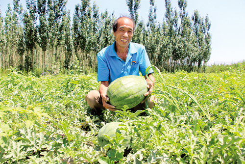 7月10日,原平市西南家村村民楊海文正在為客人采摘西瓜,忙著銷售。盛夏時(shí)節(jié),原平市西瓜大部分已經(jīng)成熟,進(jìn)入了銷售期,瓜農(nóng)采取自銷和經(jīng)紀(jì)人外銷等方式,拓寬銷售渠道,加快銷售進(jìn)度,有效提升了西瓜變現(xiàn)能力,實(shí)現(xiàn)了增產(chǎn)又增收。(吉建平 攝)