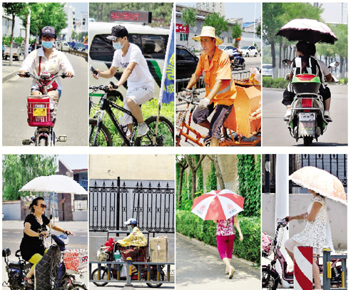 昨天是入伏第二天,忻州同全國(guó)各地一樣,也進(jìn)入了高溫天氣模式。記者在城區(qū)街頭看到,為了抵御戶外高溫的侵襲,許多市民“全副武裝”,遮陽(yáng)帽、防曬服、遮陽(yáng)傘、口罩等“裝備”不離身,與酷暑一較高下。(魯明強(qiáng) 攝)