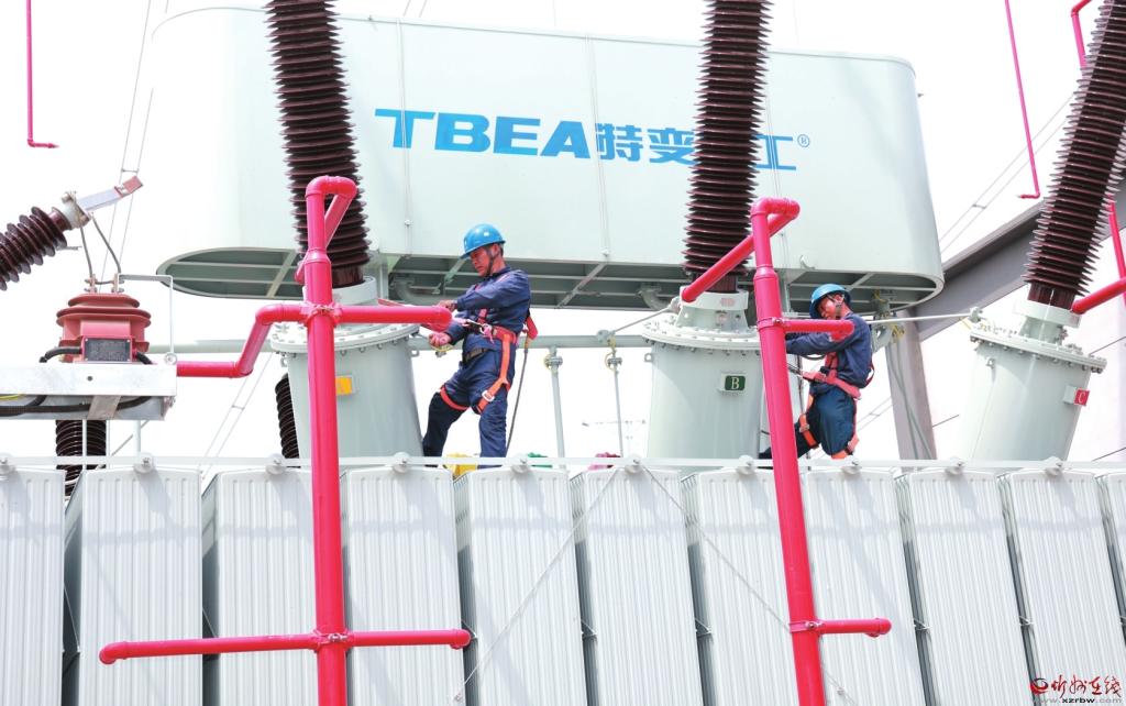 7月1日,隨著兩臺主變壓器并網(wǎng)運行,位于代縣聶營鎮(zhèn)西高泉村的220千伏顯旺變電站正式投運。圖為技術(shù)人員進行投運前的最后檢驗。 (記者 張存良攝