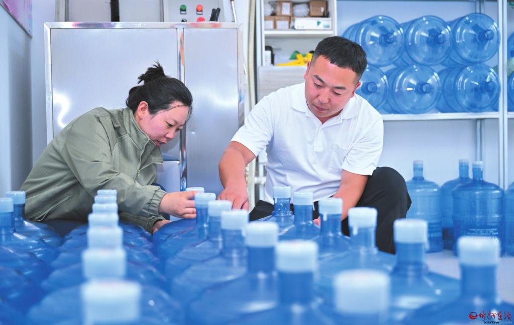 退伍軍人武靖返鄉(xiāng)創(chuàng)業(yè),在偏關(guān)縣創(chuàng)辦“武哈哈”純凈水公司,以軍人標(biāo)準(zhǔn)嚴(yán)控水質(zhì),讓家鄉(xiāng)父老喝上了健康、放心的優(yōu)質(zhì)飲用水,以實(shí)際行動(dòng)助力鄉(xiāng)村振興。 (記者 馮曉磊攝)