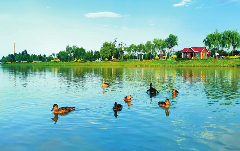 云中河濕地公園里草木蔥蘢,成為市民休閑游憩的好去處,也是候鳥遷徙的“中轉(zhuǎn)站”,每年有30余種鳥類在此棲息。牧馬河生態(tài)公園依河而建,以“自然野趣”為特色,是城市中的自然秘境。春日櫻花爛漫,秋日銀杏金黃,四季皆有景致。岸邊保留原生植被與鄉(xiāng)土樹種。園內(nèi)設(shè)有親水平臺、觀鳥屋和生態(tài)科普長廊,游人可近距離觀察魚蝦嬉戲、蘆葦搖曳。傍晚時分,夕陽映照河面,與遠處的橋梁剪影構(gòu)成一幅寧靜而富有生機的城市生態(tài)畫卷,盡顯牧馬河獨有的自然野趣與人文氣息。城區(qū)街頭新能源公交車往來穿梭,綠色出行成為新風(fēng)尚。