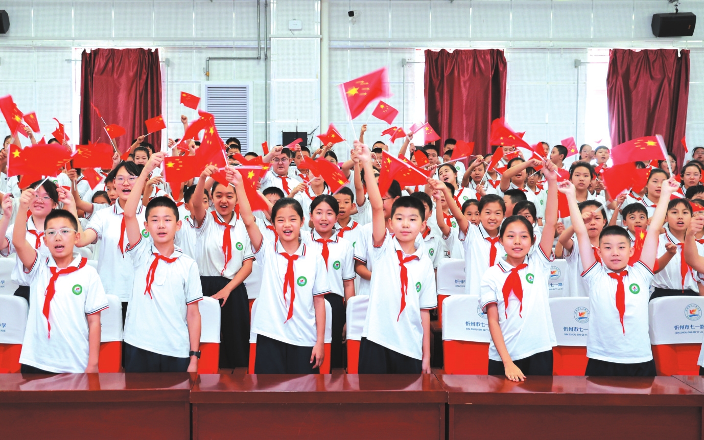 忻州市七一路小學學生觀看紀念大會。張存良攝