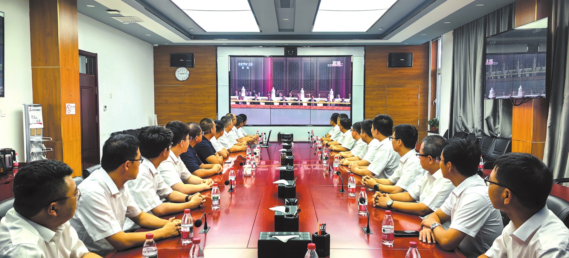 中國神華能源股份有限公司保德煤礦工作人員觀看紀念大會。陳實 趙子星攝