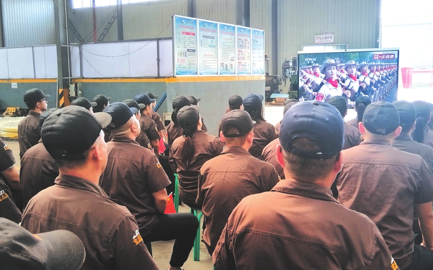 山西金正達金屬制品有限公司員工觀看紀念大會。劉婧攝