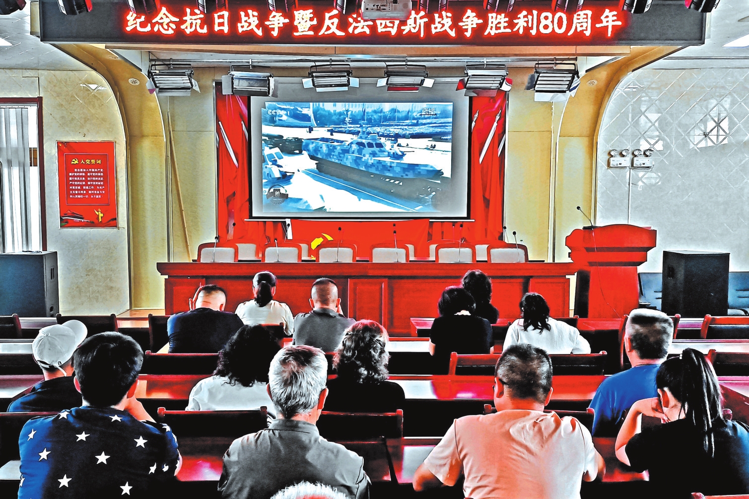 五寨縣前所鄉(xiāng)黨員干部觀看紀念大會。劉篤效攝