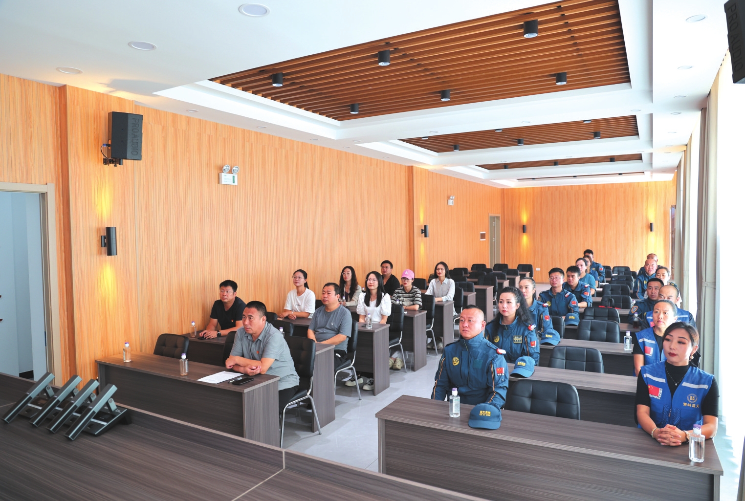 繁峙縣黨群服務中心干部職工和繁峙縣藍天救援隊隊員一同觀看紀念大會。李文浩攝
