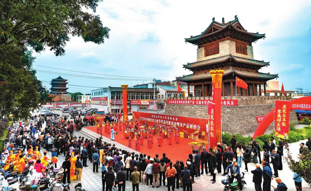 近日,“慶農(nóng)業(yè)豐收,享美好生活——2025年中國(guó)農(nóng)民豐收節(jié)代縣慶?;顒?dòng)暨農(nóng)產(chǎn)品展銷(xiāo)會(huì)”在代縣鐘樓廣場(chǎng)舉行。本次活動(dòng)不僅呈現(xiàn)了豐富多彩的文藝節(jié)目,還設(shè)有彰顯本地特色的黃酒展區(qū)、非遺展區(qū),以及各鄉(xiāng)鎮(zhèn)特色農(nóng)產(chǎn)品展區(qū),吸引了眾多游客。(王晉東攝)