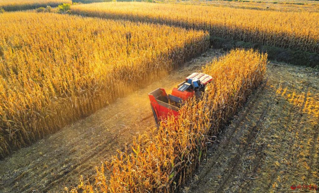 近日,原平市崞陽鎮(zhèn)下韓村村民正在緊張有序地?fù)屖沼衩祝_保秋糧顆粒歸倉。 (王晉東攝