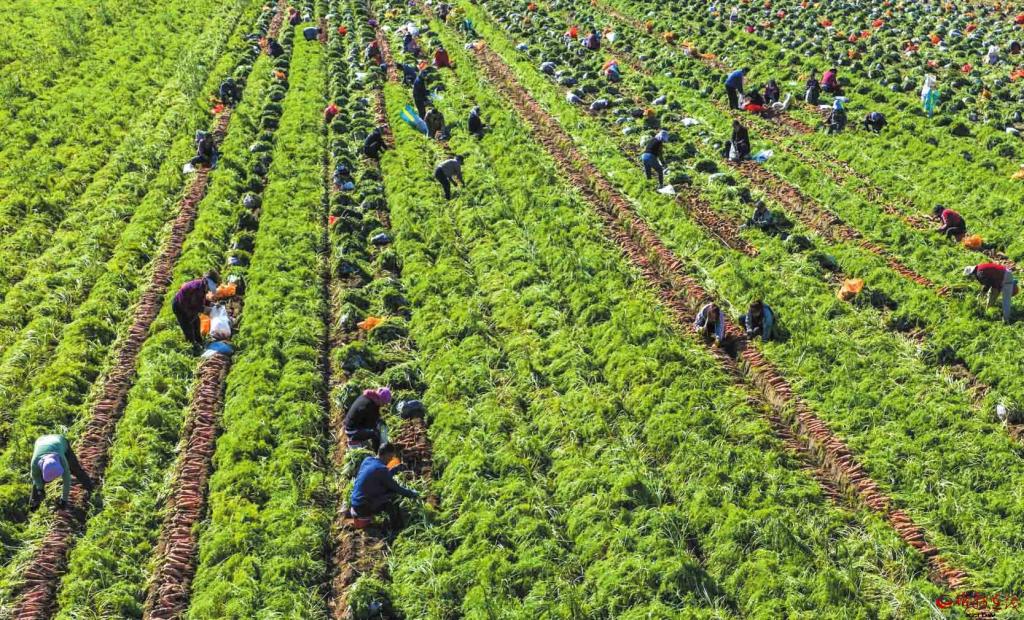 晚秋時(shí)節(jié),代縣新高鄉(xiāng)韓街村胡蘿卜種植基地迎來(lái)了豐收季。品質(zhì)優(yōu)良的胡蘿卜經(jīng)過(guò)簡(jiǎn)單處理,將被運(yùn)往全國(guó)各地市場(chǎng)。(王晉東攝)
