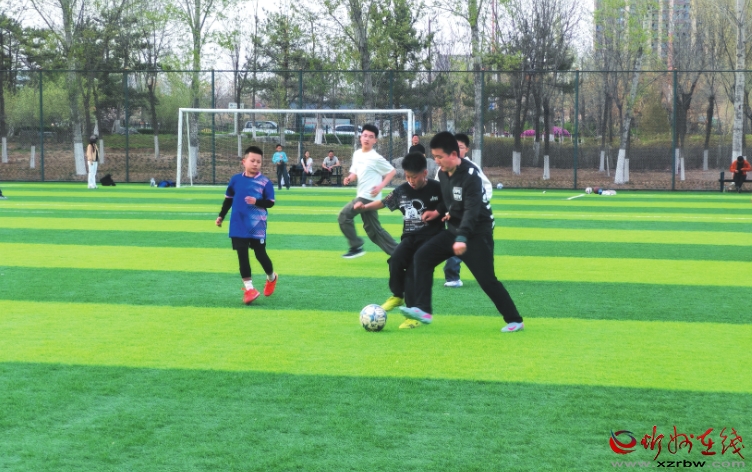 4月12日,云中河景區(qū)足球場(chǎng)綠意盎然,我市中小學(xué)的學(xué)生們正迎著春風(fēng)奔跑、傳球、射門拼搶,額角的汗水與飛揚(yáng)的球衣,勾勒出青春活力的生動(dòng)畫面。(王 陽(yáng)攝)