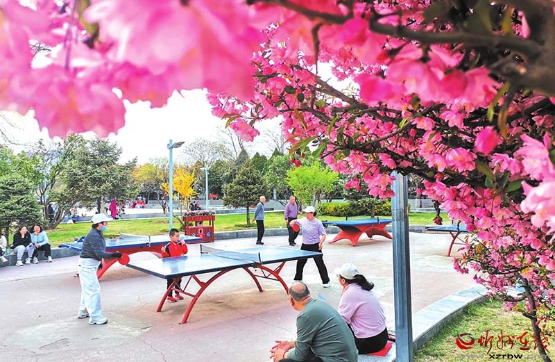 4月12日,市民在和平廣場開展戶外活動。暮春時節(jié),忻州城區(qū)姹紫嫣紅,處處生機(jī)勃勃。(記者 宮清華攝