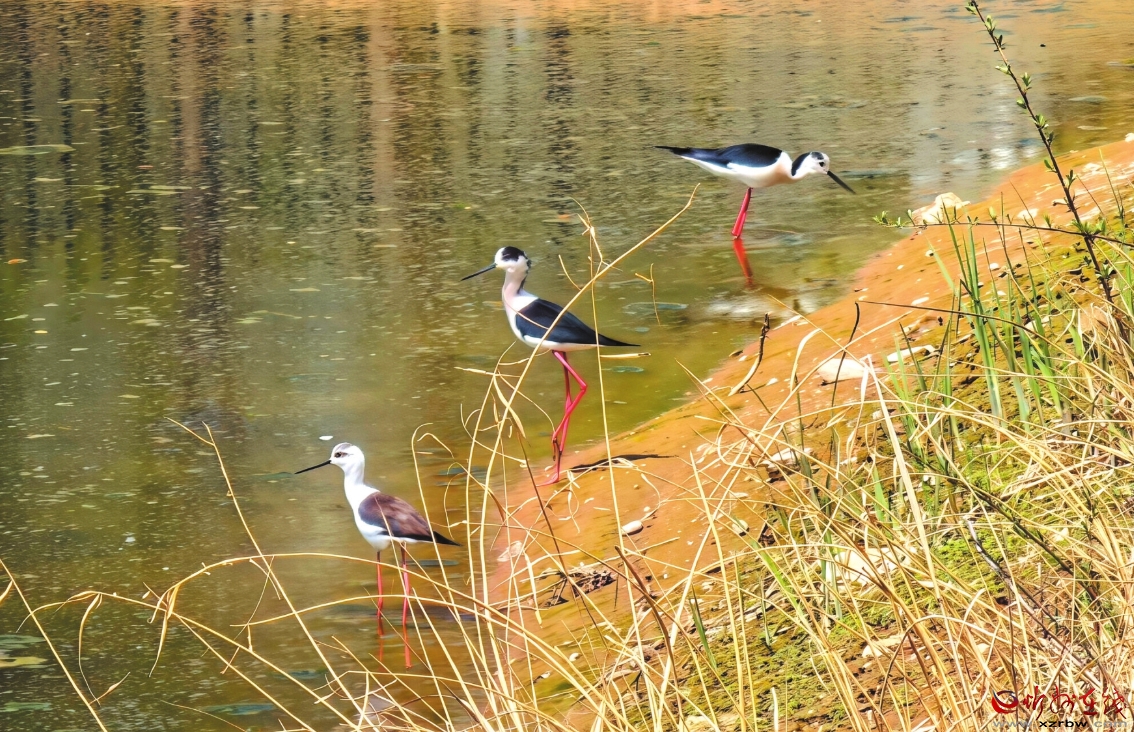 據(jù)悉,黑翅長(zhǎng)腳鷸是鸻形目反嘴鷸科長(zhǎng)腳鷸屬鳥(niǎo)類(lèi),因其體態(tài)修長(zhǎng)、姿態(tài)優(yōu)雅,亦有“紅腿娘子”的美譽(yù)。它們多棲息于湖泊、沼澤等淡水濕地環(huán)境,以軟體動(dòng)物、魚(yú)蝦、甲殼類(lèi)為食,是濕地生態(tài)系統(tǒng)的重要成員。更重要的是,黑翅長(zhǎng)腳鷸對(duì)生存環(huán)境要求高,是水生環(huán)境變化的指示性物種之一。