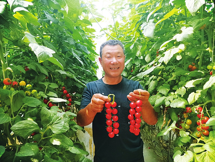 西曲河村村民喬耀文拿著一串串豐收的蔬果型番茄露出喜悅的笑容。種植戶的腰包鼓了,西曲河村邁向全面小康的步伐更堅定有力了。 李全宏攝