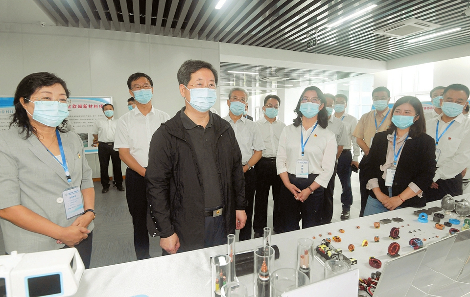 八月十七日,省委書記樓陽(yáng)生在呂梁經(jīng)濟(jì)技術(shù)開發(fā)區(qū)數(shù)字經(jīng)濟(jì)產(chǎn)業(yè)園察看入駐企業(yè)產(chǎn)品展示。本報(bào)記者史曉波攝