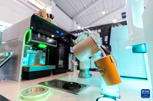 6月22日,拉花咖啡機器人在第9屆南博會上制作咖啡。(新華社記者 高詠薇 攝)