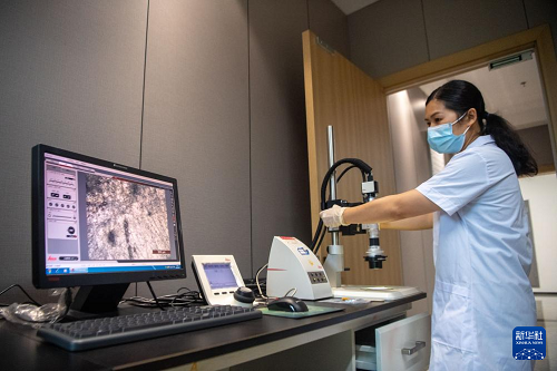 6月24日,在大足石刻文物醫(yī)院,工作人員采集石質(zhì)文物的數(shù)字化信息。(新華社記者 唐奕 攝)