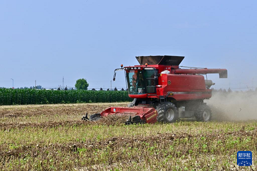 7月8日,收割機在作業(yè),為后續(xù)播種大豆做準(zhǔn)備。(新華社記者 吳青昊 攝)