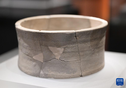這是一件出土自雄安古州城遺址的戰(zhàn)漢時期的陶量(7月28日攝)。(新華社記者 李賀 攝)