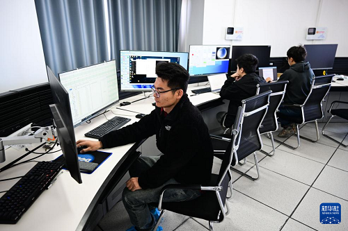 7月29日,由中國(guó)科學(xué)院國(guó)家天文臺(tái)實(shí)施的用于太陽磁場(chǎng)精確測(cè)量的中紅外觀測(cè)系統(tǒng)AIMS項(xiàng)目科研人員在工作。(新華社記者 張龍 攝)
