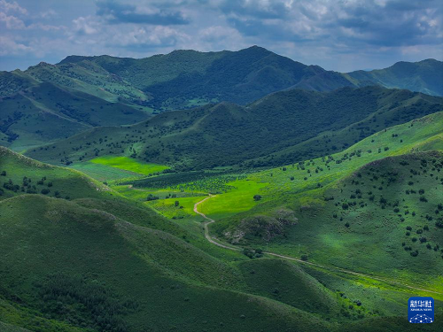 這是8月11日拍攝的內(nèi)蒙古通遼市扎魯特山地草原美景(無人機照片)。(新華社記者 連振 攝)