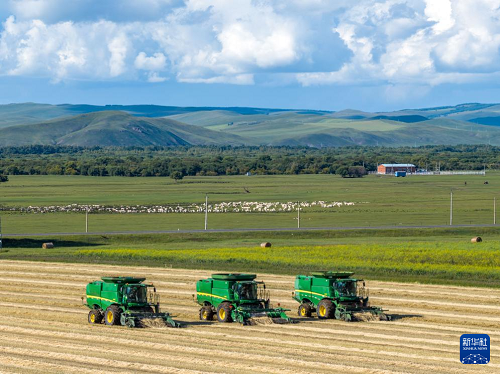 近日,位于內蒙古呼倫貝爾市額爾古納市的呼倫貝爾農(nóng)墾拉布大林農(nóng)場19.22萬畝小麥迎來豐收季,當?shù)剞r(nóng)民搶抓農(nóng)時,以大規(guī)模機械化的方式開展收割、晾曬作業(yè)。