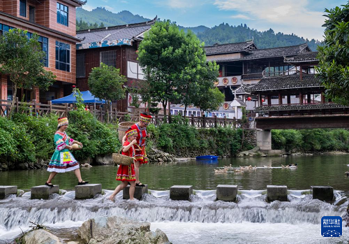 8月22日,游客在湖南省婁底市新化縣天門鄉(xiāng)土坪村休閑游玩。(新華社發(fā) 吳永華 攝)