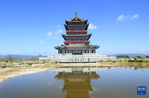 8月31日,游客在河南省洛陽(yáng)市汝陽(yáng)縣瑞云山森林公園瑞云閣觀光。(新華社發(fā) 康紅軍 攝)