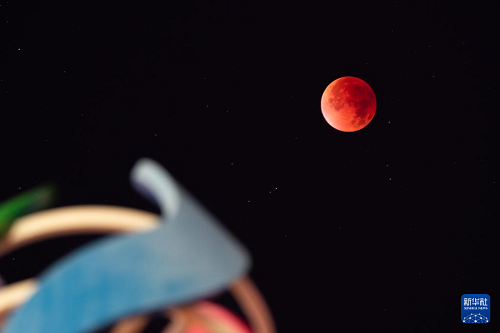 這是9月8日凌晨在云南省蒙自市拍攝的“紅月亮”。(新華社記者 高詠薇 攝)