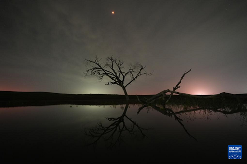 這是9月8日在寧夏吳忠市鹽池縣馮記溝鄉(xiāng)拍攝的月食景象。(新華社記者 王鵬 攝)
