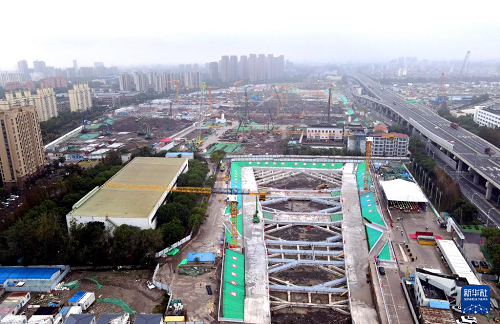 這是10月16日拍攝的建設(shè)中的上海寶山站(無人機照片)。(新華社記者 方喆 攝)
