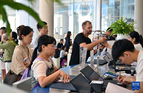 10月18日,游客在海南陵水一家酒店的前臺辦理手續(xù)。(新華社記者 郭程 攝)