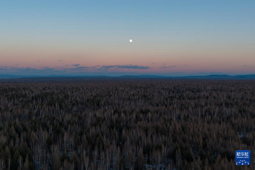 這是11月4日拍攝的黑龍江省伊春市豐林縣上空的月亮(無(wú)人機(jī)照片)。(新華社記者 謝劍飛 攝)