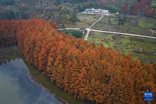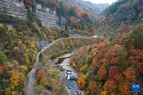 漢中市南鄭區(qū)境內的黎坪國家森林公園秋色(11月5日攝,無人機照片)。(新華社記者 邵瑞 攝)