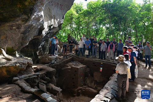 11月8日,考古專家在三亞落筆洞遺址觀察發(fā)掘現(xiàn)場。(新華社記者 郭程 攝)
