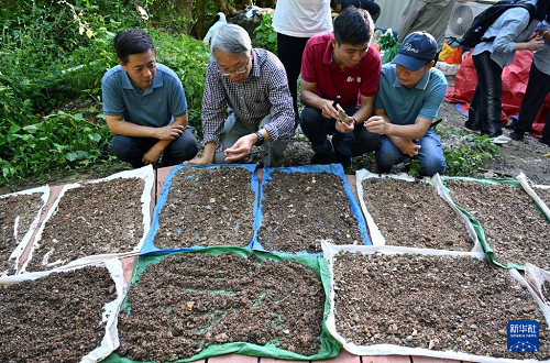 11月8日,考古專家對三亞落筆洞遺址出土土壤進(jìn)行篩選。(新華社記者 郭程 攝)