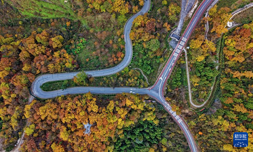 11月10日拍攝的湖北省襄陽市保康縣馬橋鎮(zhèn)景色(無人機(jī)照片) 。(新華社發(fā) 陳泉霖 攝)