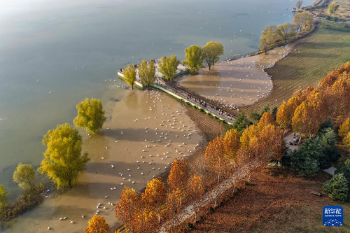 11月16日,天鵝棲息在山西省運城市平陸縣黃河濕地三灣段。(新華社發(fā) 權(quán)永軍 攝)