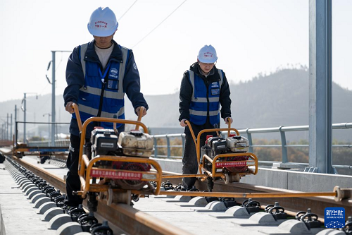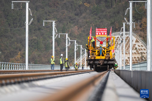 11月27日,在湖北十堰神定河特大橋上,西安至十堰高速鐵路(簡稱“西十高鐵”)全線最后一對長鋼軌鋪設(shè)落地,標志著西十高鐵全線鋪軌工程順利完工,為后續(xù)聯(lián)調(diào)聯(lián)試奠定基礎(chǔ)。