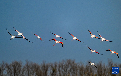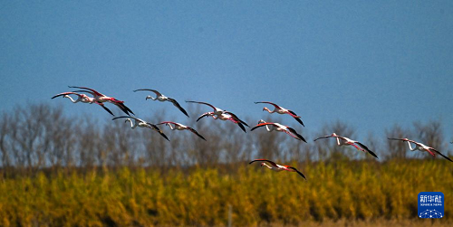 江蘇東臺(tái):火烈鳥飛抵條子泥濕地越冬